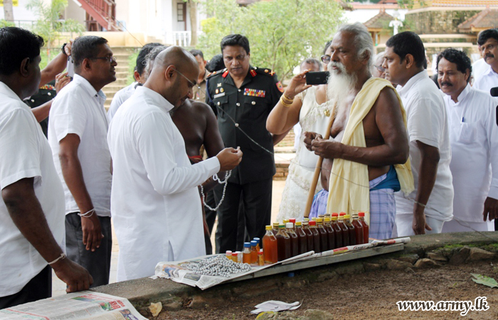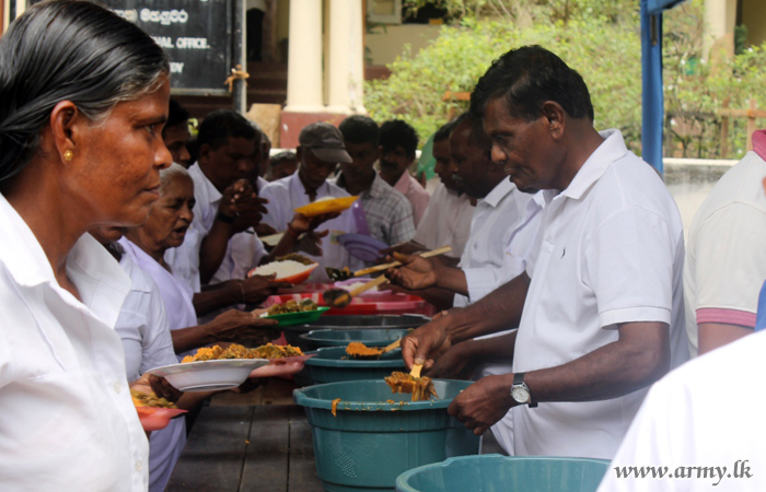 Under the supervision of the Major General T.J Nanayakkara, General Officer Commanding, 11 Division, the troops provided cooked meals to hundreds of farmers and other attendees who brought their new harvest for the age-old rituals. |