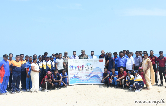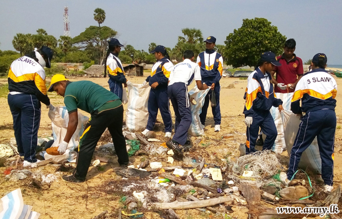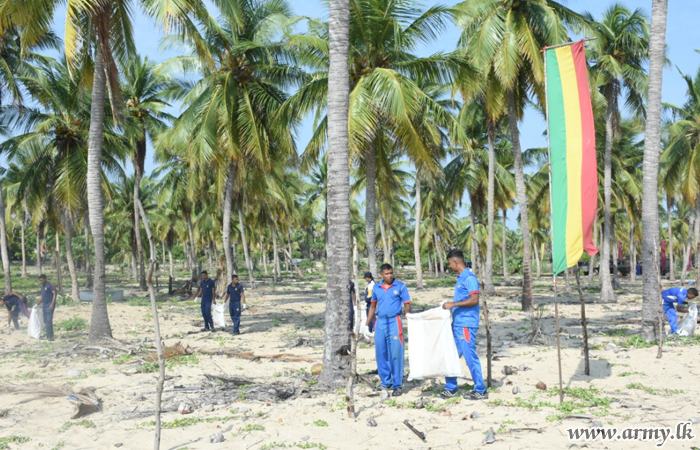 50 troops of the SFHQ-MLT and a group of 250 troops belonging to the 681 Brigade, 14 Vijayabahu Infantry Regiment and 9 Sri Lanka National Guard early morning commenced a beach-cleaning drive from Mullivaikkal west up to the Challei coastal belt in cooperation with the authorities at Mullaittivu, Puthukuduirippu and Muhudubada Patthu Divisional Secretariats under the theme ‘Clean Beach-Beautiful Country’.