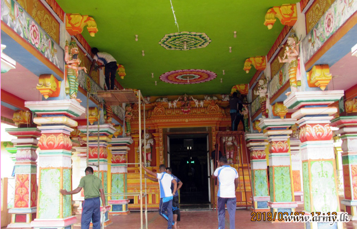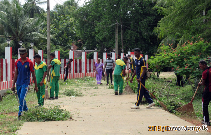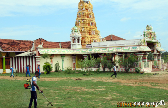 A total of 140 Officers and Other Ranks serving the 59 Division, Forward Maintenance Area, Brigades and Units jointly cleaned the Mulliyaweli Uththankarai Pulleyar Hindu Kovil and both sideways of the road that leads to the Kovil. Members and employees in the Kovil also extended their support for the project.