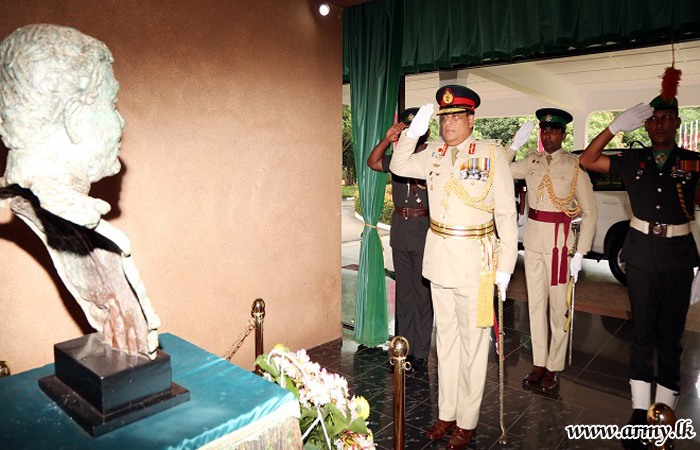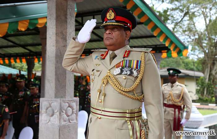 Giving prominence to the memory of its founding fathers and hundreds of fallen Gajaba Regiment (GR) War Heroes, the chain of anniversary events got off with the arrival of the Colonel of the Regiment, GR, Major General Shavendra Silva, Adjutant General at Army Headquarters who was greeted to a formal Guard Turnout at the entrance to the Home of Gajaba.