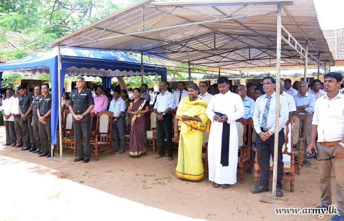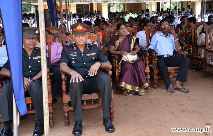 Major General Ruwan Wanigasooriya, General Officer Commanding (GOC), 59 Division was one among the distinguished invitees to the 50th Anniversary commemoration of Mullaittivu Vidyananda National Vidyalaya and the retirement ceremony of its Principal, Mr P.K Shivalingam, held on Thursday (18) at the school premises.