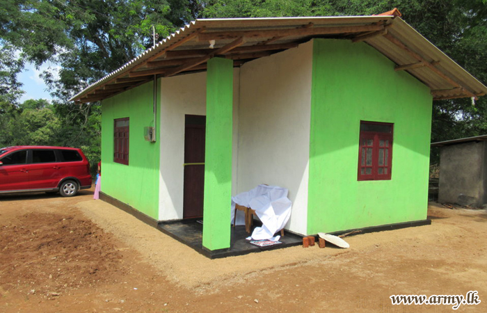 Centre for Army Vocational Training of the Army (CAVT) - Kala Oya, responding positively to a request submitted by the Rajanganaya Pradeshiya Sabha (RPS) offered its technical support for construction of a new house, meant for a poor family with five children.