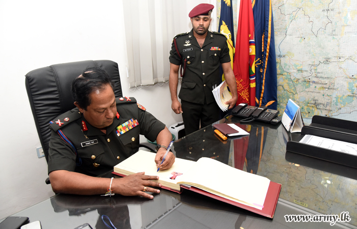 To signify the relinquishment of his office, the Central Commander left a couple of thoughts in the formal book at the office. After extending best wishes to All Ranks, Major General Rukmal Dias was given a street line good bye in the premises.