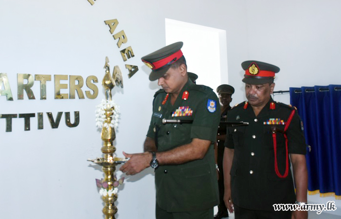 The newly-constructed office complex at the Forward Maintenance Area - Mullaittivu (FMA-MLT) was opened by the Commander, Security Forces-Mullaittivu (SF-MLT), Major General Dushyantha Rajaguru on Monday (22).