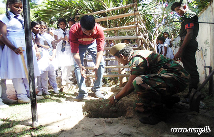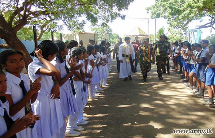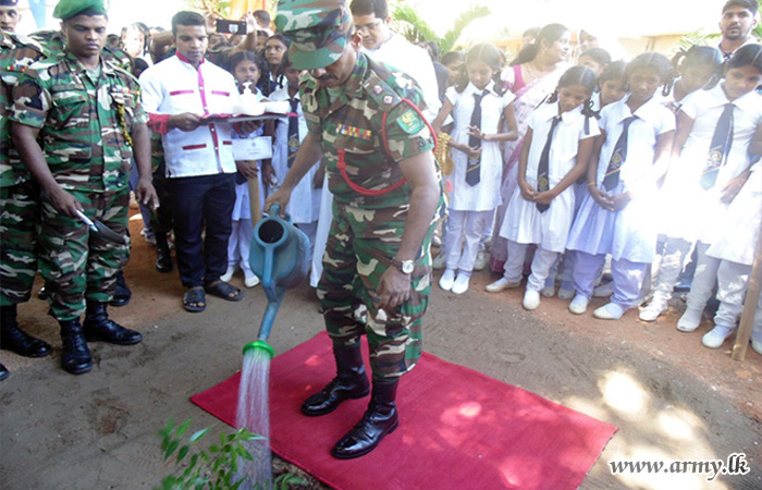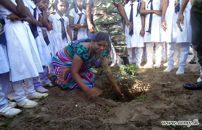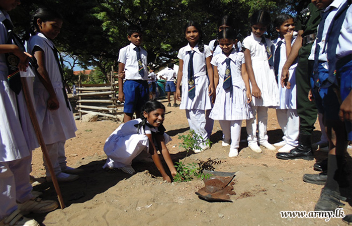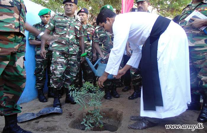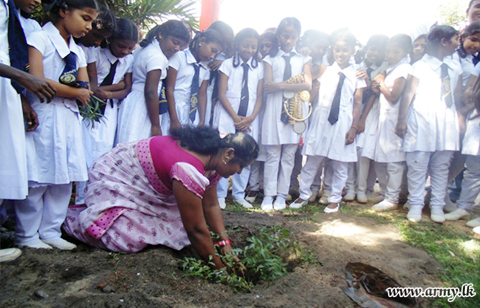 543 Brigade troops as one more community project launched in the area planted a large stock of valuable saplings in Pesalai Fatima Maha Vidyalaya premises following a request made to that effect by school authorities on Friday (19).