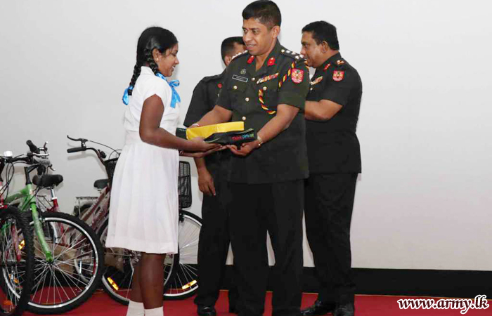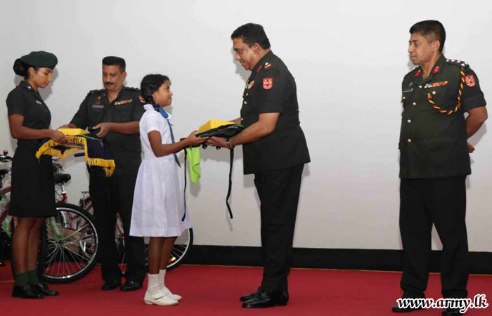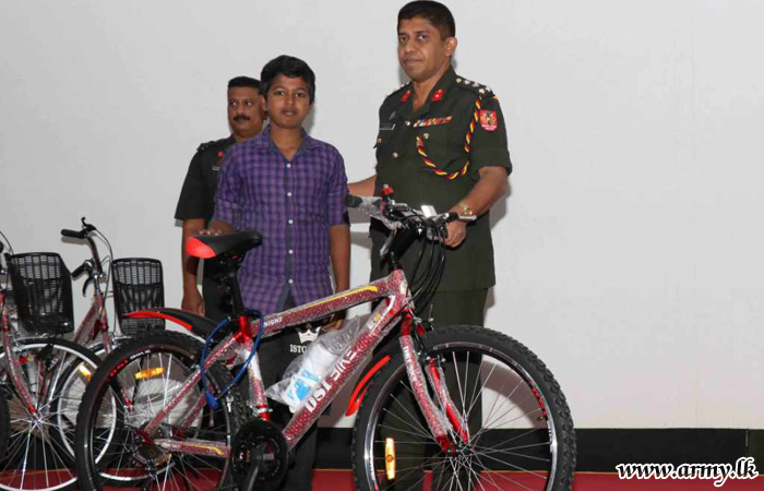 Security Force Headquarters - Jaffna (SFHQ-J), expanding its community projects further gave away a stock of push bicycles and school accessories as incentives to Jaffna students during a simple arrangement, held at the SFHQ-J premises on Tuesday (23).