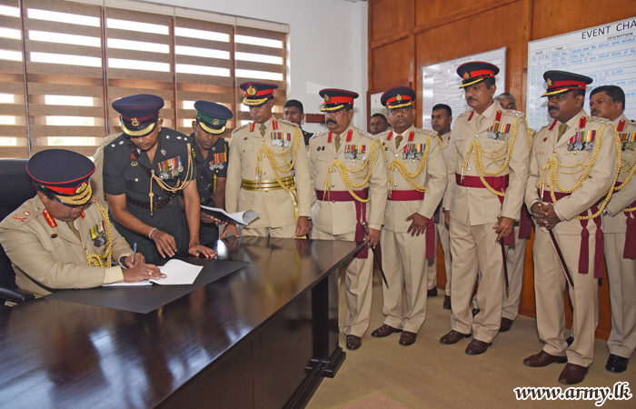 A brief ‘Pirith’ chanting ceremony in his new office invoked blessings on the appointment and as a formality, the new SLAVF Commandant symbolically placed his signature in an official document before he addressed a gathering of SLAVF Officers and Other Ranks who had gathered in the premises.