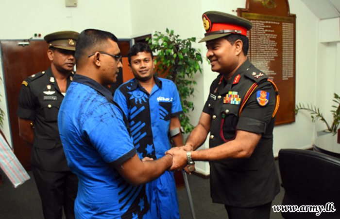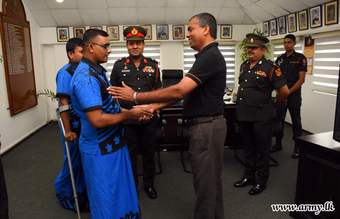Major General Ajith Kariyakarawana after inviting those two beneficiaries to his office gave away the Octapad to both disabled War Heroes who are now practising music. Major General Ajith Kariyakarawana thanked donors for their concern and thoughtfulness about the War Heroes. |