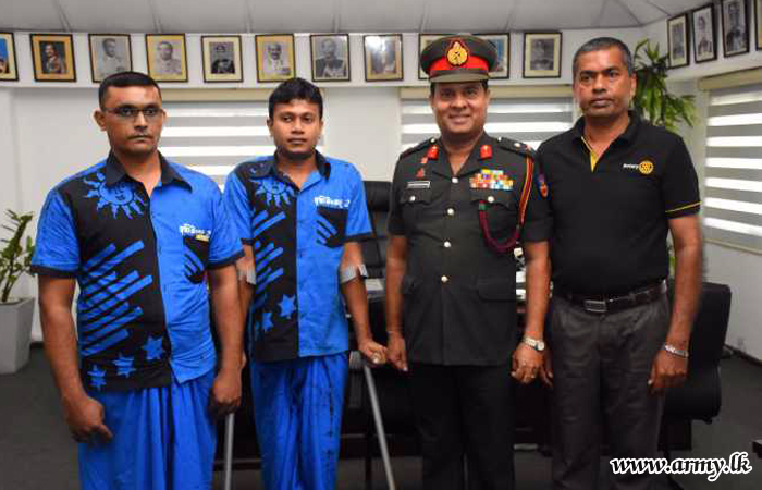 On an initiative taken by Major General Ajith Kariyakarawana, Deputy Chief of Staff of the Army Headquarters and Colonel of the Regiment, Vijayabahu Infantry Regiment, Mr J.S.P Jayasinghe of Taniya Caters owner and Nikaweratiya Rotary Club donated a brandnew Octapad (musical instrument) for the benefit of two disabled War Heroes resident at ‘Abimansala - 2’ Kamburupitiya, Matara on Monday (22).