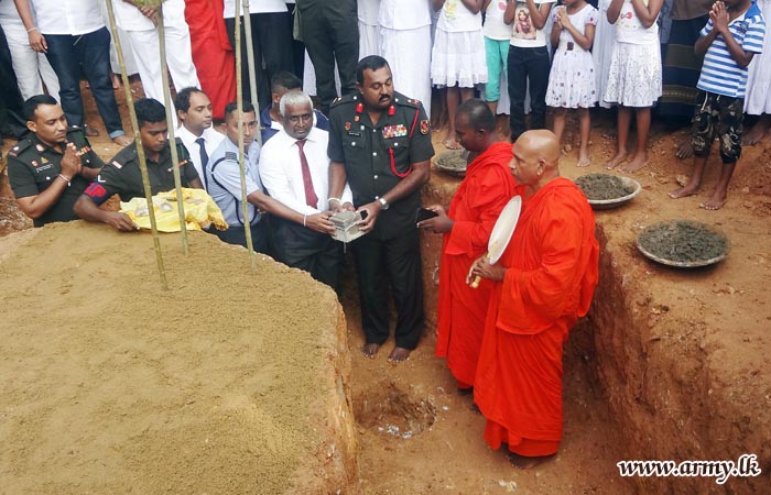 The event, organized under the guidance of the Chief Incumbent at Buddhist Dharmodaya Purana Viharaya drew a large gathering of invitees and devotees. The Commanding Officer 16 (Volunteer) Gemunu Watch serving the area also participated in the project.