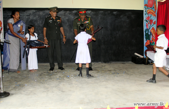 Under the supervision of the General Officer Commanding, 53 Division, Major General Athula Koddippily, troops donated school accessories and a desktop computer to the students in the same school, sponsored by Colombo Vishwa Parami Foundation.