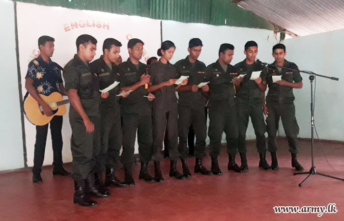 On the directions of the Commander, Security Forces - Kilinochchi (SF-KLN), and under the supervision General Officer Commanding (GOC) 57 Division Major General Vijitha Ravipriya an elementary English course for other rankers got underway during 22 October-05 November at Thondaman Nagar Camp.