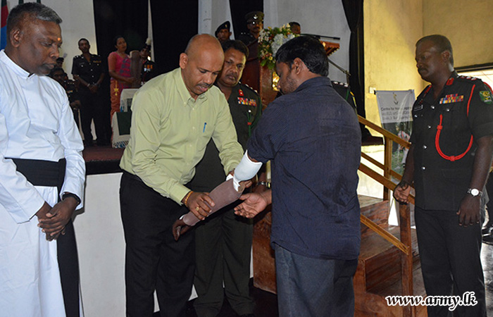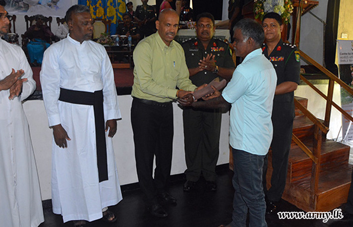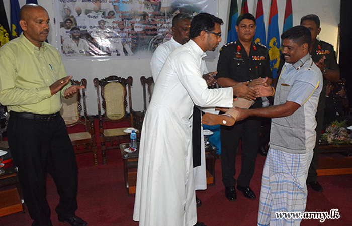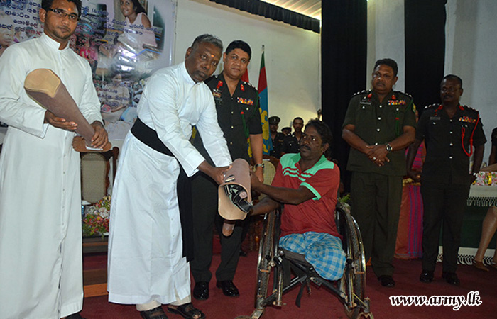 Extending the Army’s humanitarian assistance further to physically-handicapped civilians in Thachchanamaradamadu in the Madu area, 61 Division Headquarters in collaboration with the Centre for Handicapped in Kundasale distributed artificial limbs to 16 civilians of low-income groups on Saturday (3) during a brief ceremony at the 613 Brigade Headquarters at Maradamadu.