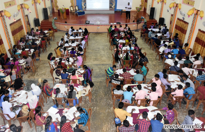 More than 320 G.C.E General Certificate of Education (O/L) examination candidates from several schools in Mulliyaweli, Mullaittivu and Kokilai in areas served by 59 Division troops of the Security Force Headquarters - Mullaittivu (SFHQ-MLT) attended a Seminar on Mathematics, organized by the 59 Division Headquarters at Mulliyaweli, Uththankarni Pullayar Kovil Reception Hall on Saturday (3).