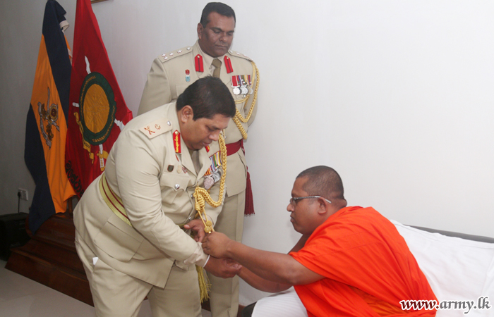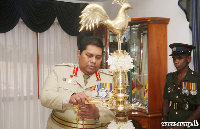 A Guard Turnout plus a Guard of Honour, presented by 7 Sri Lanka Light Infantry troops soon after his arrival at the premises greeted him in accordance with military traditions before he participated in religious observances of Buddhist faith after lighting the traditional oil lamp.