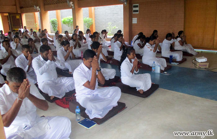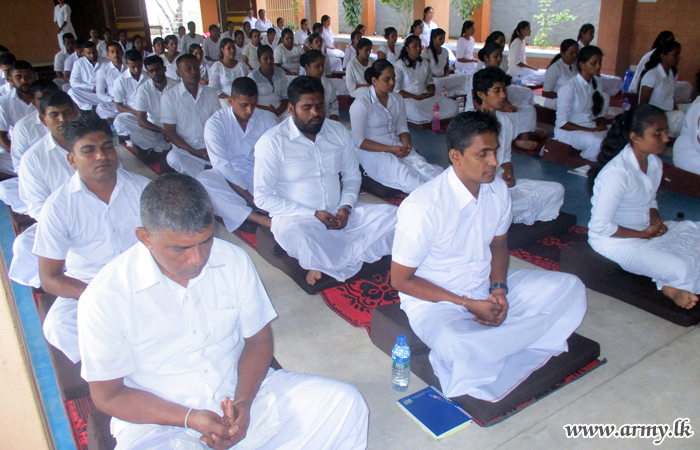 As one more phase of the ongoing spiritual development programme, Directorate of Psychological Operations had one more meditation session organized at Helummahara, ‘Bavunseth Vipassana Bhavana’ Centre on Wednesday (7).