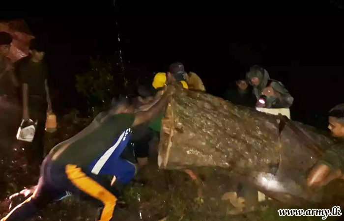 The sudden cyclonic winds that swept across the Mullaittivu District during late hours on Wednesday (7) prompted around 30 Army personnel of 14 Sri Lanka Sinha Regiment and 23 Vijayabahu Infantry Regiment serving the 64 Division to act swiftly and begin clearing work and relief roles, if any.