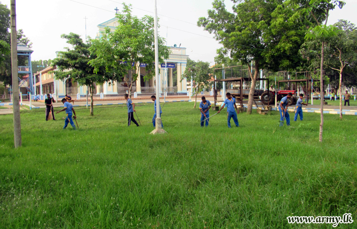 On the directions of the General Officer Commanding, 61 Division, Brigadier K. D. C. G. J Tilakarathne, a group of Officers and Other Rankers of the 26 Sri Lanka Light Infantry (SLLI) and the 24 Gajaba Regiment (GR) under the 613 Brigade enthusiastically took part in a Shramadana programme to clean Madu Shrine surroundings on Monday (12).