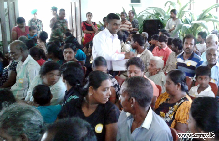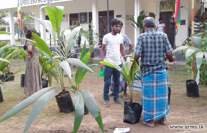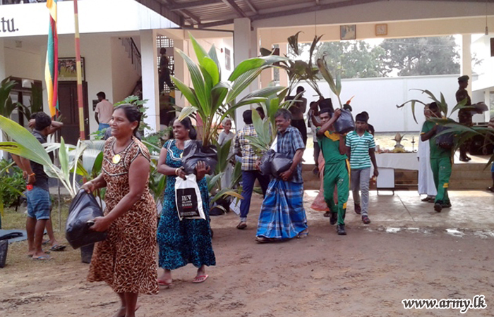 On the directions of the General Officer Commanding, 65 Division, Brigadier Wasantha Kumarapperuma, civilians were invited to Pallayarankaddu and given those coconut saplings as economic incentives. |