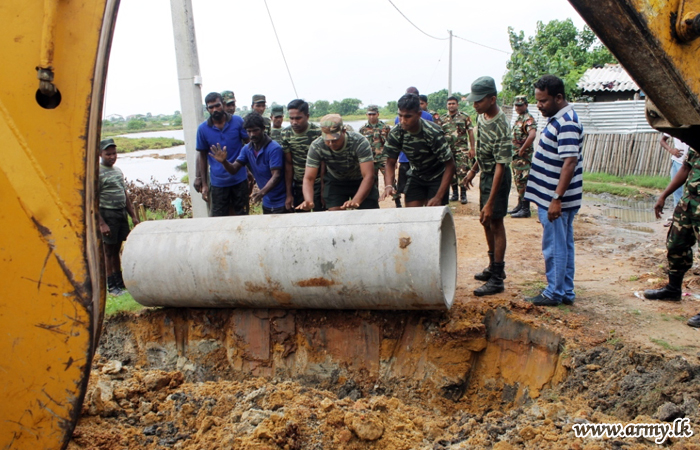 Troops Assist Civilians in Thannamarachchi to Drain Accumulated Rain Water