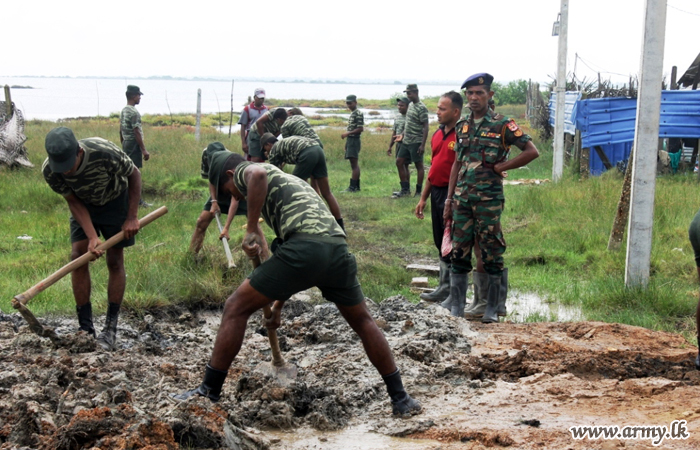 Army troops along with officials in the Disaster Management Centre at Chavakachcheri Urban Council and Thannamarachchi Divisional Secretariat Office assisted Kovilkudiirippu civilians, engaged in draining of rainy water that accumulated in their residential areas on Wednesday (21)