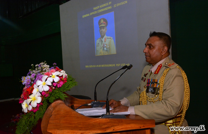 Later, he addressed the troops and urged them to maintain the highest standards of discipline at all levels to ensure the effective function of the Headquarters 22 Division.