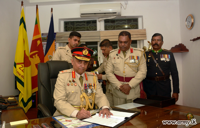 Afterwards, the GOC planted a sapling in the gymnasium premises to mark his inauguration of office. Major General W. A. N. M Weerasinghe amid religious observances signed an official document and formally accepted the office.