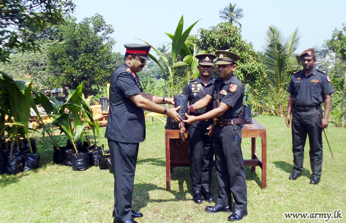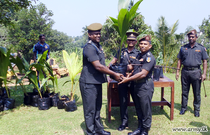 Organized on the instructions of Major General H. R. K. P Peiris, Chief Field Engineer (CFE), troops planted about 50 Jack and 60 coconut saplings during the programme. |