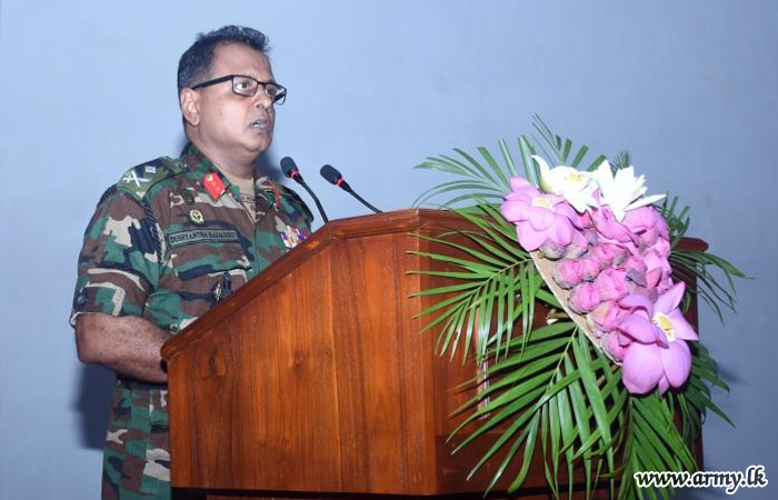 The Chief Instructor of the school briefed the visiting Commander on the progress of the ongoing battalion training sessions of the soldiers of 9 Sri Lanka National Guard (SLNG) and received an update.
