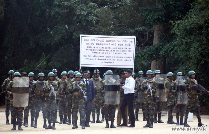 SF Commander afterwards addressed the troops and watched several practical demonstration sessions, related to crowd disposal.