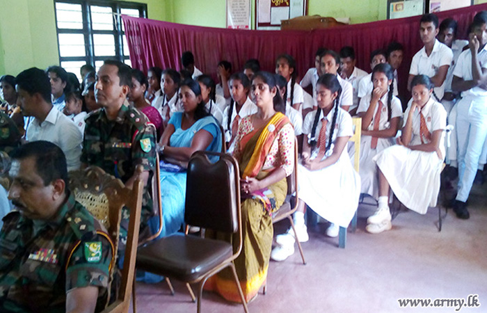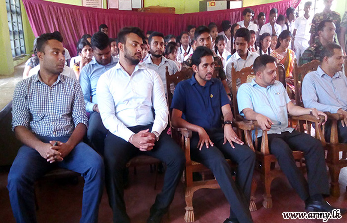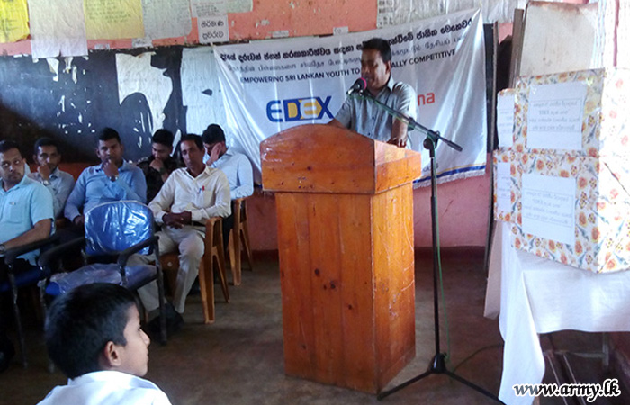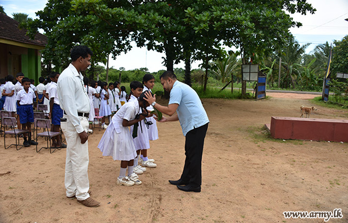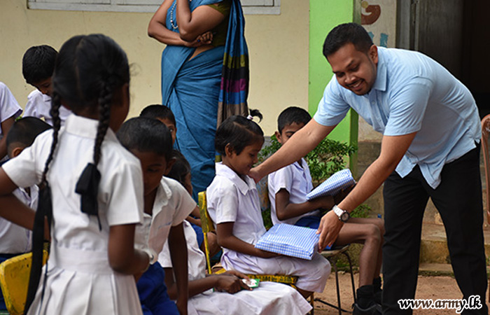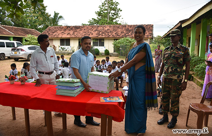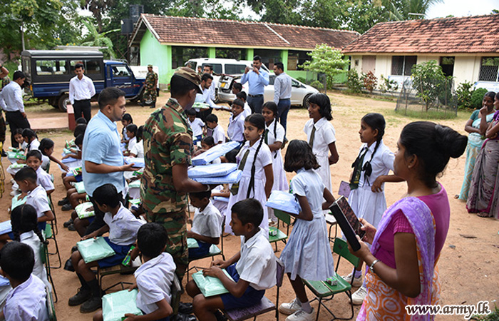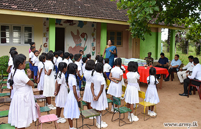 The donation programme Kalukunnanmaduwa Vidyalaya was organized by 2 Volunteer Vijayabahu Infantry Regiment on the directions of the Commander, 211 Brigade, Colonel M.G.T.D Rathnasekara and under the supervision of the General Officer Commanding of 21 Division, Brigadier Kumar Jayapathirana. Other distribution programmes were coordinated by troops of the 62 Division under the guidance of the General Officer Commanding, 62 Division, Brigadier J.M.U.D Jayasinghe.
