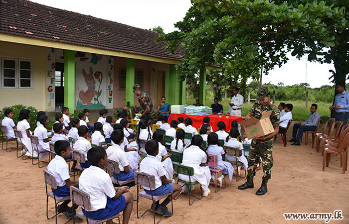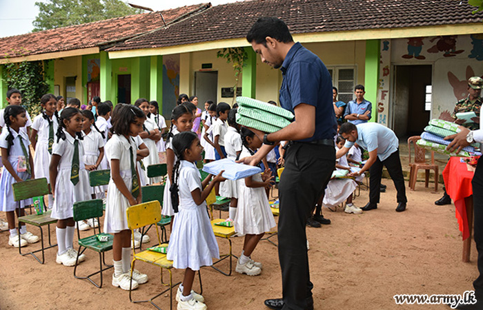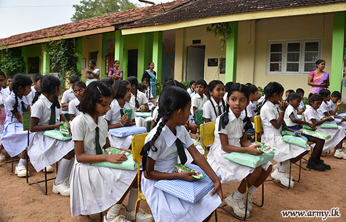 Students in selected far off schools including Kalukunnanmaduwa Vidyalaya, Wahalkada D-05 Vidyalaya, Padaviya D-10 Maithri Vidyalaya and Jayanthiwewa Maha Vidyalaya received those school items during separate ceremonies held in those respective schools.
