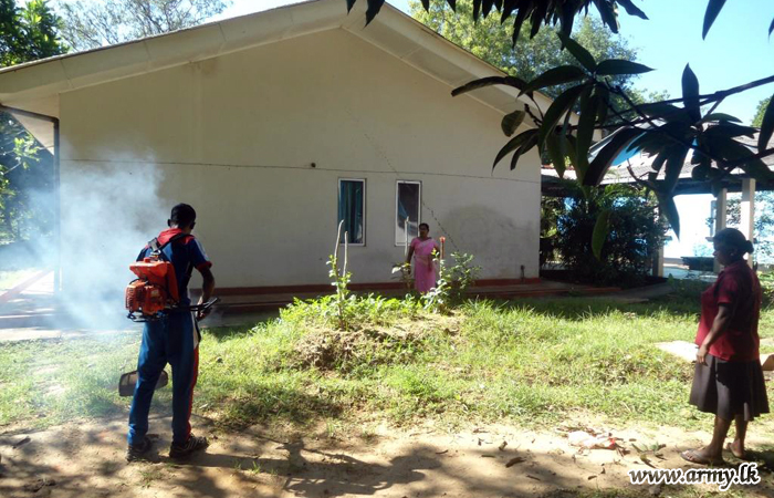 Troops of 8 Gemunu Watch (GW) and 3 Sri Lanka National Guards (SLNG) of the 12 Division under the Security Force Headquarters - Central (SFHQ-Cen) carried out the Dengue prevention campaigns on the directions of Major General Ruwan De Silva and under the guidance of the General Officer Commanding 12 Division.