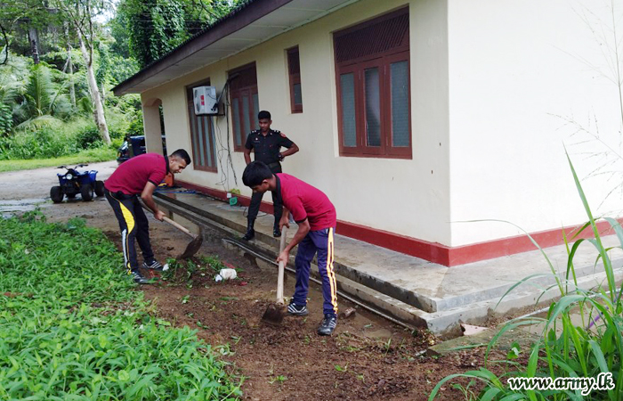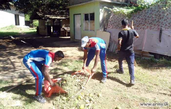 Accordingly, Okkampitiya District Hospital premises was cleaned by a team of six Army personnel including an officer of 8 GW on 30 November and one Officer and 10 Other Ranks of 3 SLNG on Sunday (2) cleared the surroundings at Kataragama District Hospital premises in order to prevent any outbreak of this deadly virus. |