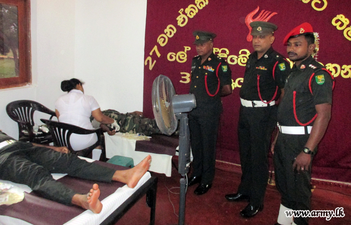 3 Sri Lanka Corps of Military Police (SLCMP) troops to coincide with their 27th Anniversary (March 22) conducted a blood donation campaign on Thursday (27) November at Anuradhapura camp. 117 troops donated their blood to this charity.