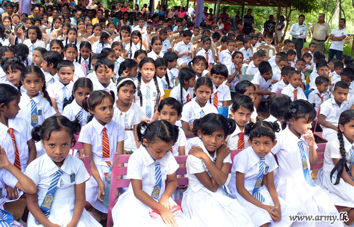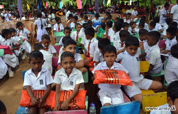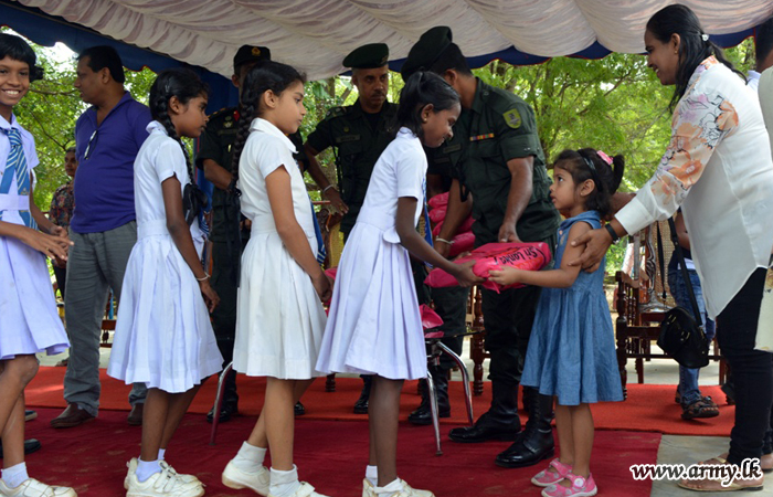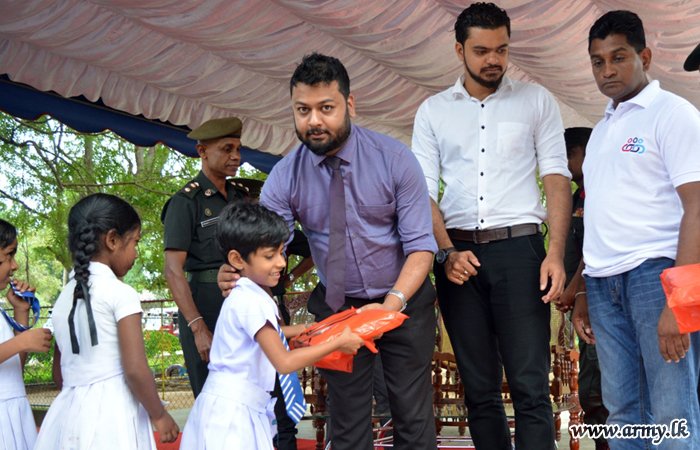 Gift parcels including school accessories sponsored by (Rtd) Major Aruna Perera and his friends were distributed among school students at both Kumudupura Primary School and Bebiyawa Primary School in Medirigiriya under the coordination of the Security Force Headquarters - East (SFHQ-E) during a ceremony held at Kumudupura Primary School, Medirigiriya on Friday (30).