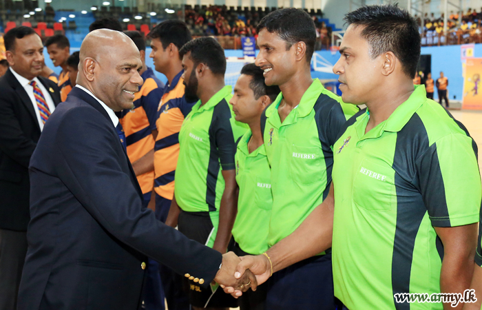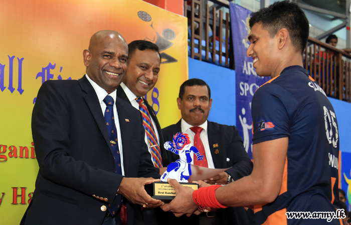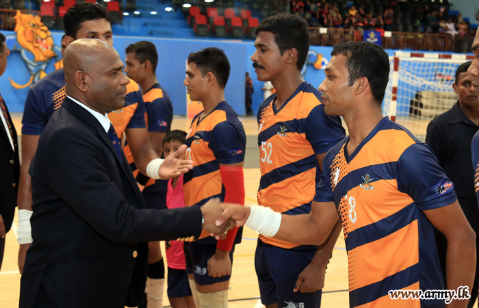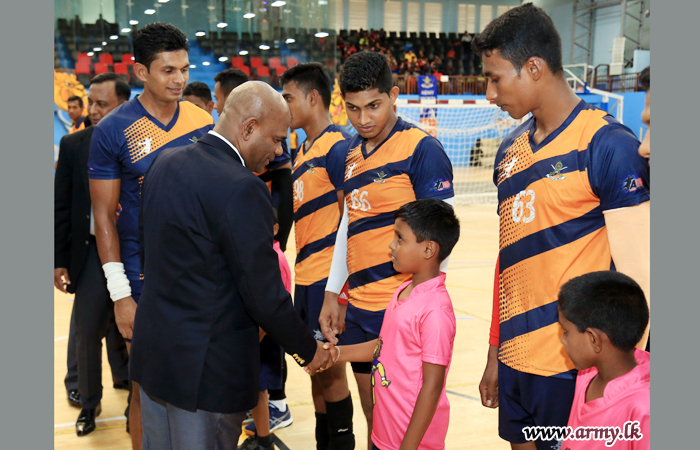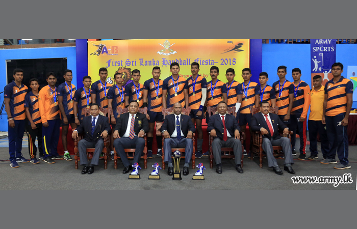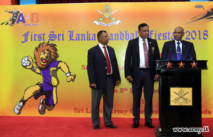 Major General Dampath Fernando, Chief of Staff welcomed the day's Chief Guest. This ‘Sri Lanka Handball Fiesta - 2018’ tournament, held during the 4 - 8 December with 23 men’s island-wide teams and 5 women's sides was the first tournament of this game in the recent history of Sri Lanka.