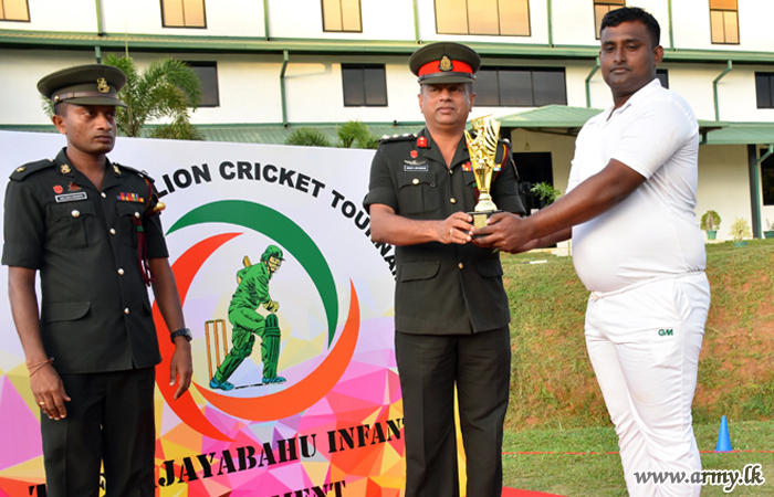 Private C. M. S Kumara (5 VIR), won the Man of the Series and the Best Batsman. Best Bowler Lance Corporal S. S. C Jayarathne (5VIR), Captain K. A. D. T Kotelawala (5 VIR) Man of the Match at the finals. |
