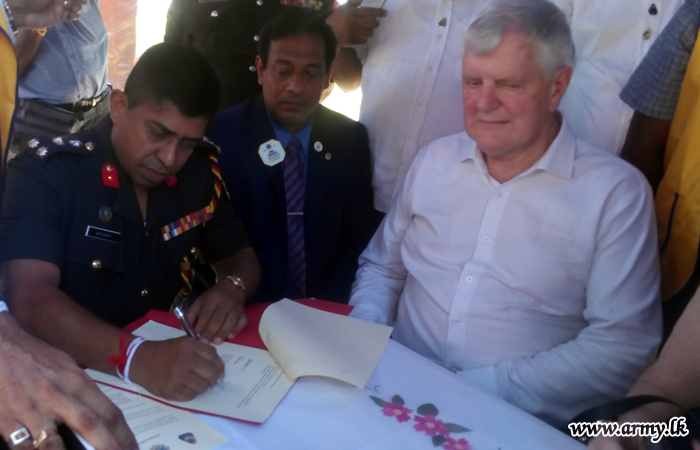 After Brigadier Ajith Elwatte, Brigadier Army Quartering (BAQ) at the SFHQ-J on behalf of the Commander, Security Forces - Jaffna, Major General Darshana Hettiarachchi, signed the MoU with Lion Dr. M Ramajeyam, the District Governor of Lions District 306 B2 on Monday (3) to this effect, troops are expected to plant those saplings in the park shortly.