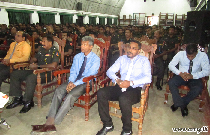 A valuable lecture on ‘Suicide prevention & life without alcohol’ was conducted at the Security Forces Headquarters - Central (SFHQ-Cen) on the directions and supervision of the Commander, Security Forces -Central, Major General Ruwan de Silva on Wednesday (12) at the Torch Cinema -Diyatalawa.
