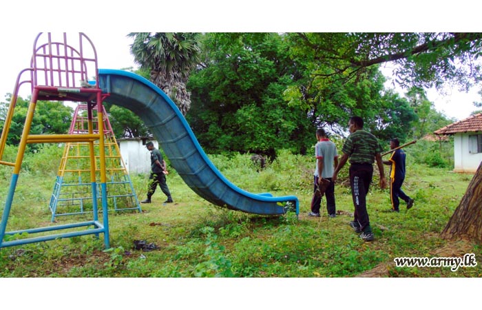 13 Sri Lanka National Guard (SLNG) troops under command to the 64 Division of the Security Force Headquarters - Mullaittivu carried out a 'Shramadana' programme in the Udayan preschool premises, situated in the Thaddidaymale Grama Niladhari Division on Saturday (15).