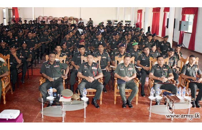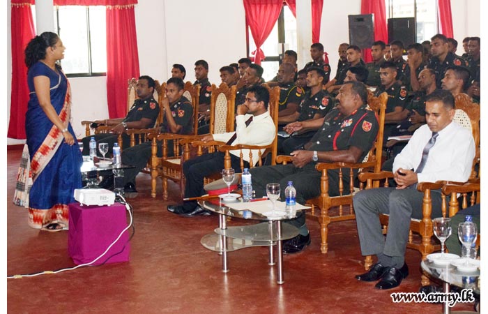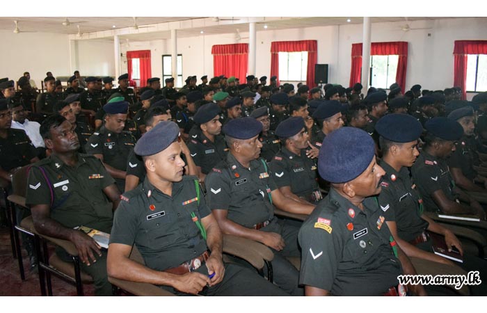 17 Officers and 179 Other Ranks from all under command formations in the 58 Division on Wednesday (19) listened to a lecture on ' 'Prevention of Suicides' at the Sri Lanka Light Infantry (SLLI) Regimental Training School Boossa.