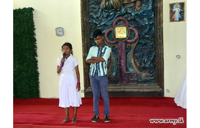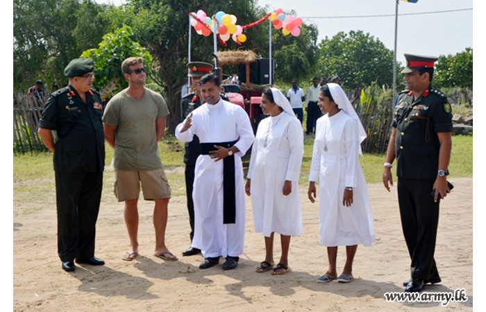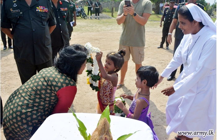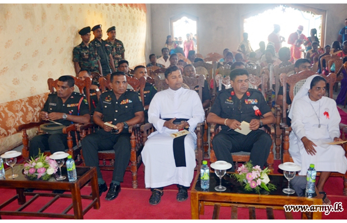 Commander, Security Forces - Wanni (SF-W), Major General Kumudu Perera as the Chief Guest, together with Mrs Shiromi Masakorala, Mr Mark of Hemas Outreach, 54 Division General Officer Commanding, Brigadier Senarath Bandara and senior Officers took part in the programme as distinguished guests. The parish priest at St Peter's Church, Kalladi, Fr Belan Crooz and Sister Jeyawathi were also present as religious dignitaries.