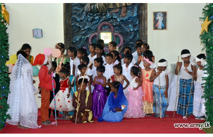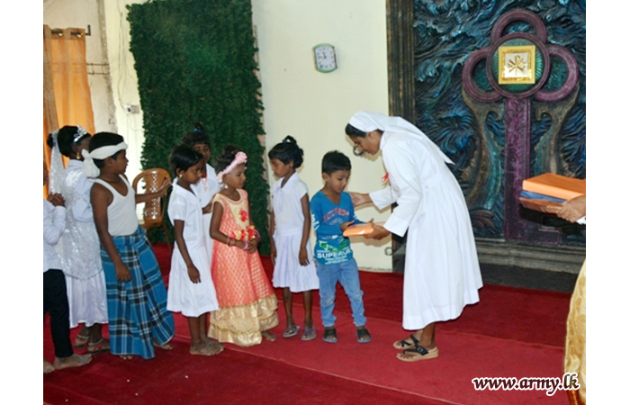 Highlighting the true spirits of the festive season, a stock of Christmas gifts were also distributed during the same occasion. The event was grandly organized on account of the upcoming Christmas festival including a concert and Carols, performed by both students at St Peter's Piyawara pre-school and Army troops of the 54 Division.