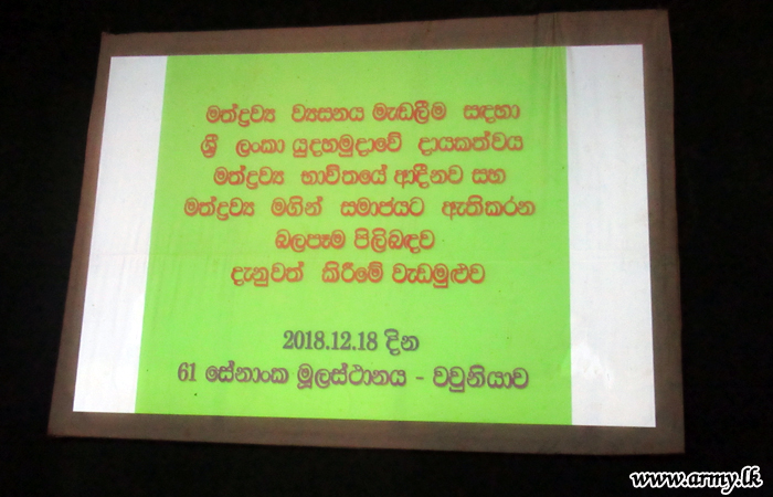 61 Division Troops and 613 Brigade Troops of the Security Force Headquarters - Wanni (SFHQ-W) respectively learnt more about ‘Illegal Drugs & Usage’ during two separate lecture sessions, organized on the instructions of Major General Kumudu Perera, Commander, Security Forces - Wanni (SF-W) on Tuesday (18).
