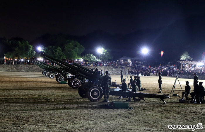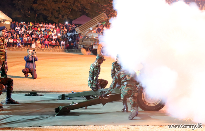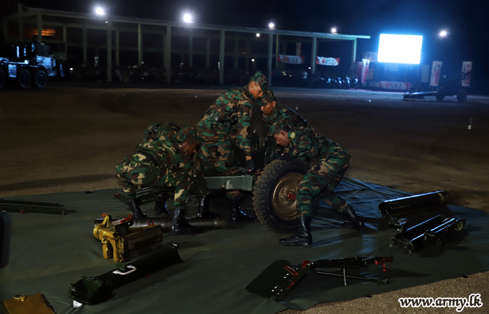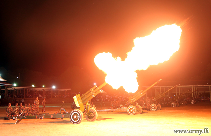 The School of Artillery of the Sri Lanka Artillery (SLA) Regiment at Minneriya, adding a new feature to the history of its Passing out Parades (PoPs) had its first ever Post Depot (FD-211) Night PoP on Sunday (23) at the school premises, headed by Major General Rukmal Dias, Colonel of the Regiment, SLA and Commandant, Sri Lanka Army Volunteer Force as the Chief Guest.