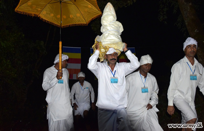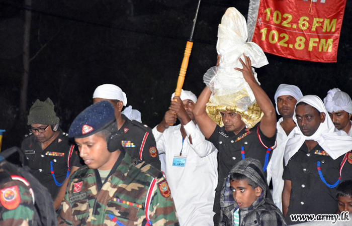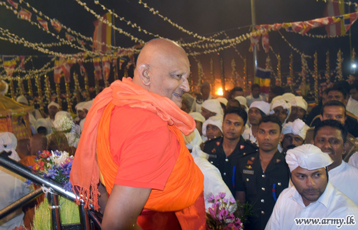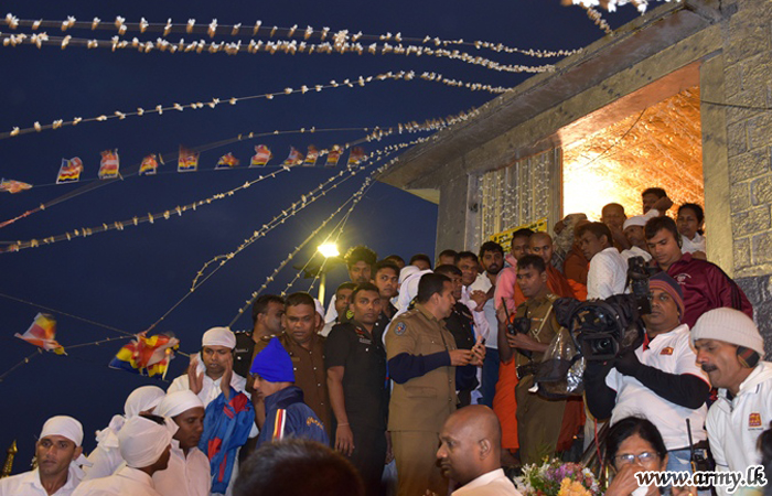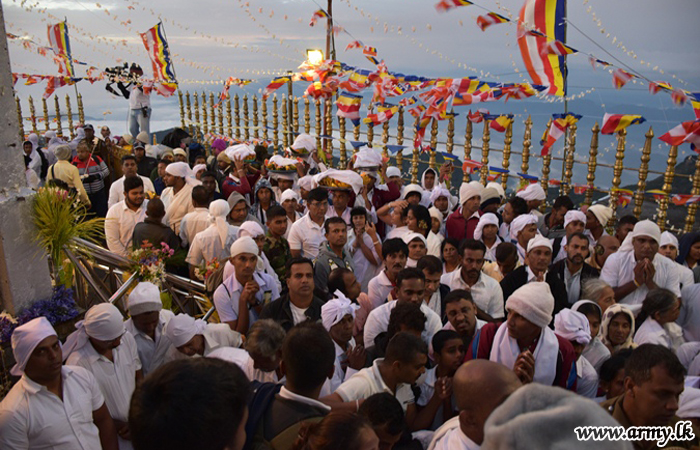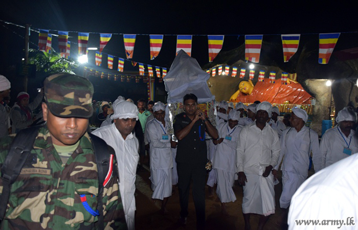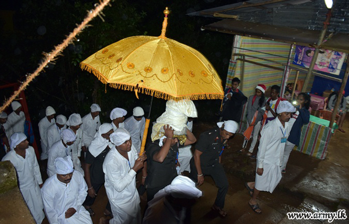 A group of 49 Army troops of the 19 Sri Lanka National Guard (SLNG) serving the Security Force Headquarters - Central on Unduwap Full Moon Poya Day (22) extended their support for carriage of the statue of God Sumana Saman in the procession to be placed atop the Sri Pada which heralds the commencement of the season for veneration.