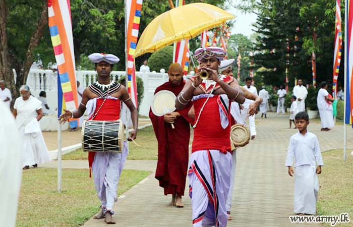The programme consisted of a Bodhi Pooja, preceded by a procession that carried flowers for veneration. Major General Sathyapriya Liyanage, Commander, Security Forces - West on the directions of the Commander of the Army Lieutenant General Mahesh Senanayake launched the project with the support of the Sri Lanka Army Buddhist Association. |
