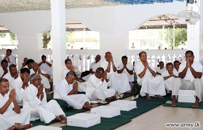 900 plus troops of the Security Force Headquarters-West including Regimental Centers of the Sri Lanka Army Medical Corps and Sri Lankan National Guard on account of Unduwap Poya Full Moon Day (22) observed ' Sil' at Panagoda Army Temple and attended religious observances throughout the day in order to elevate their spiritual standards.