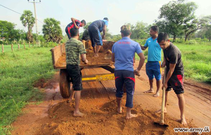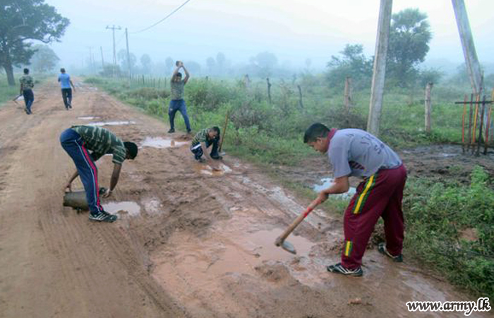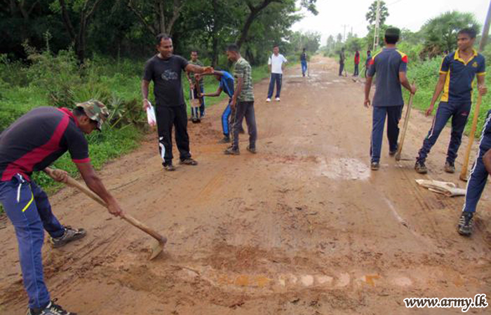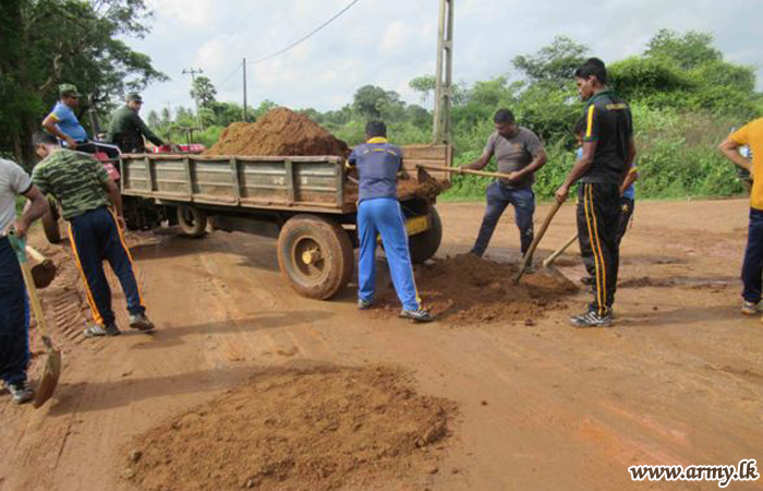 Brigadier K.D.C.G.J Thilakarathne, General Officer Commanding (GOC), 61 Division took the initiative in a massive Shramadana project attended by troops and the local community alike. Due to poor maintenance and extreme weather conditions experienced in the most recent times, the road turned not motor-able at all since large potholes prevented public/private transport between two destinations. .
